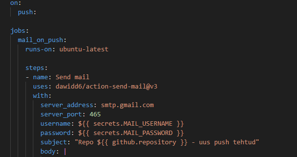 subject: "Repo ${{ github.repository }} - uus push tehtud"