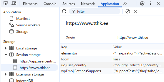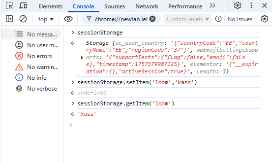3.vali “Console” ja kirjuta käsk: sessionStorage ning vajuta ENTER