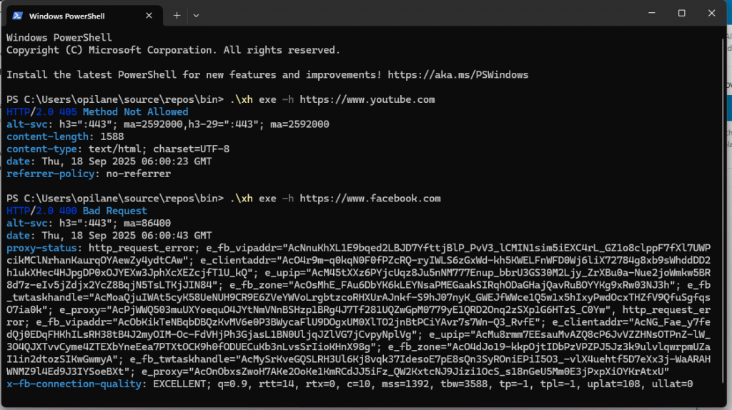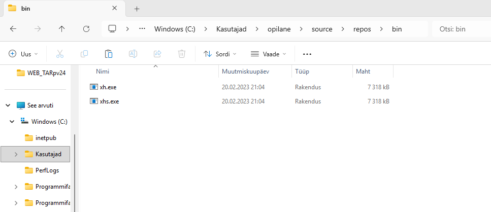 Ülesandes tuli saata HTTP-päring veebiserverile, kasutades käsurea tööriista .\xh exe -h …url…, ning vaadata, milliseid küpsiseid (cookies) server vastuseks saadab.